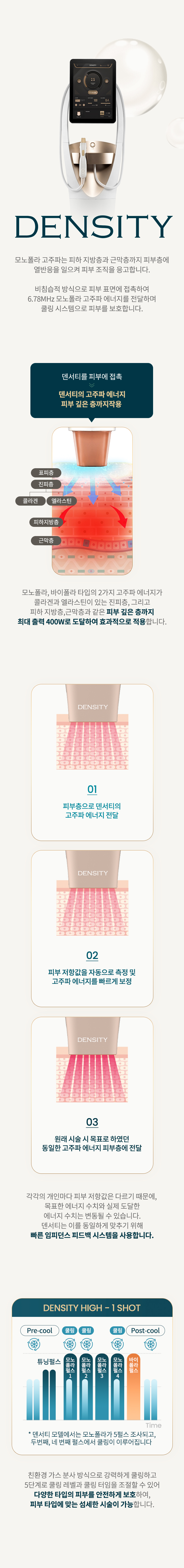 덴서티의 고주파 에너지 피부 깊은 층까지 작용